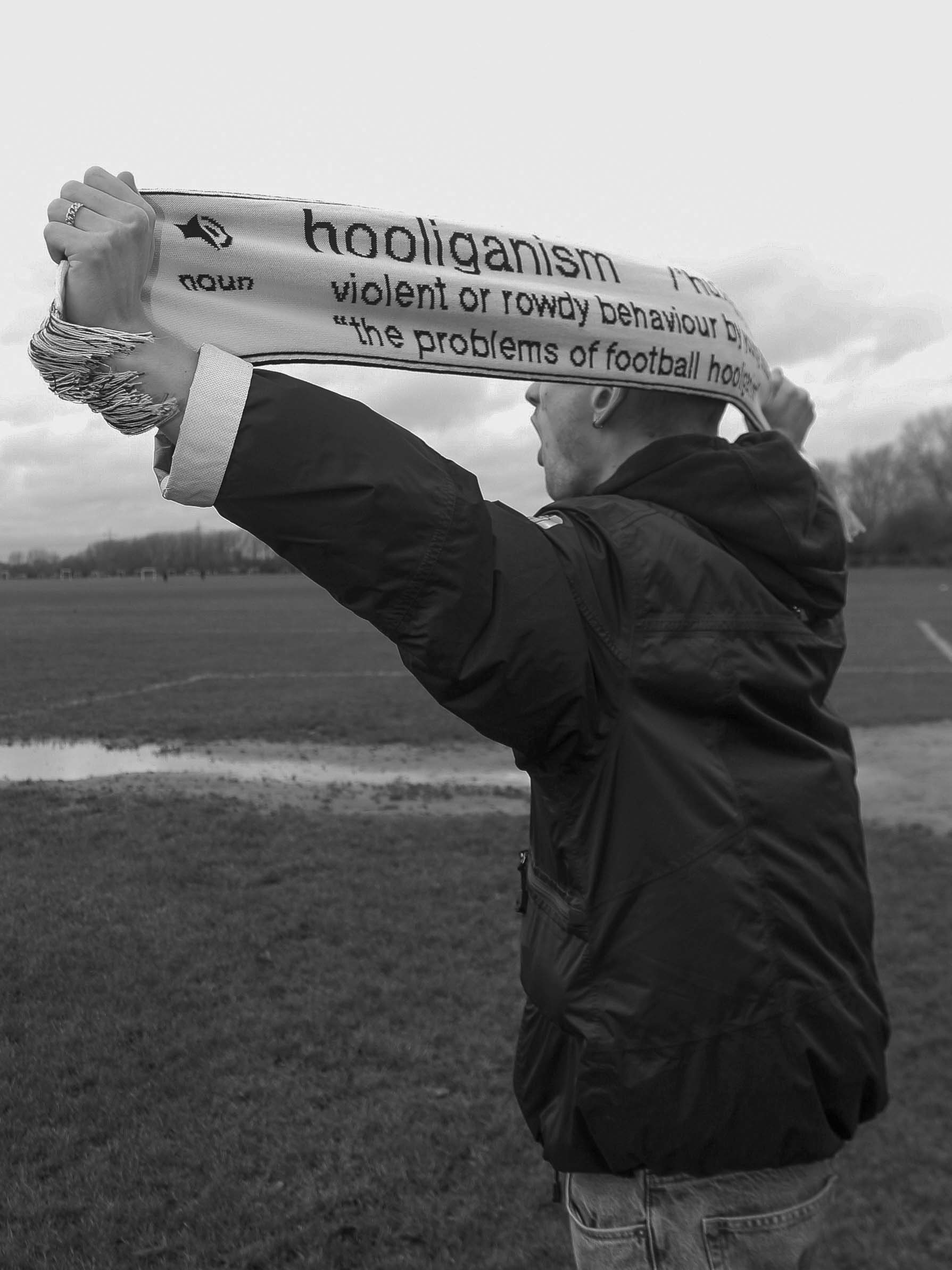 The actions of this subculture reflect poorly on football. They paint it in a detrimental light based on their actions, distracting from the game itself. The badge of allegiance to football, a football scarf, acts as a canvas to raise these questions.